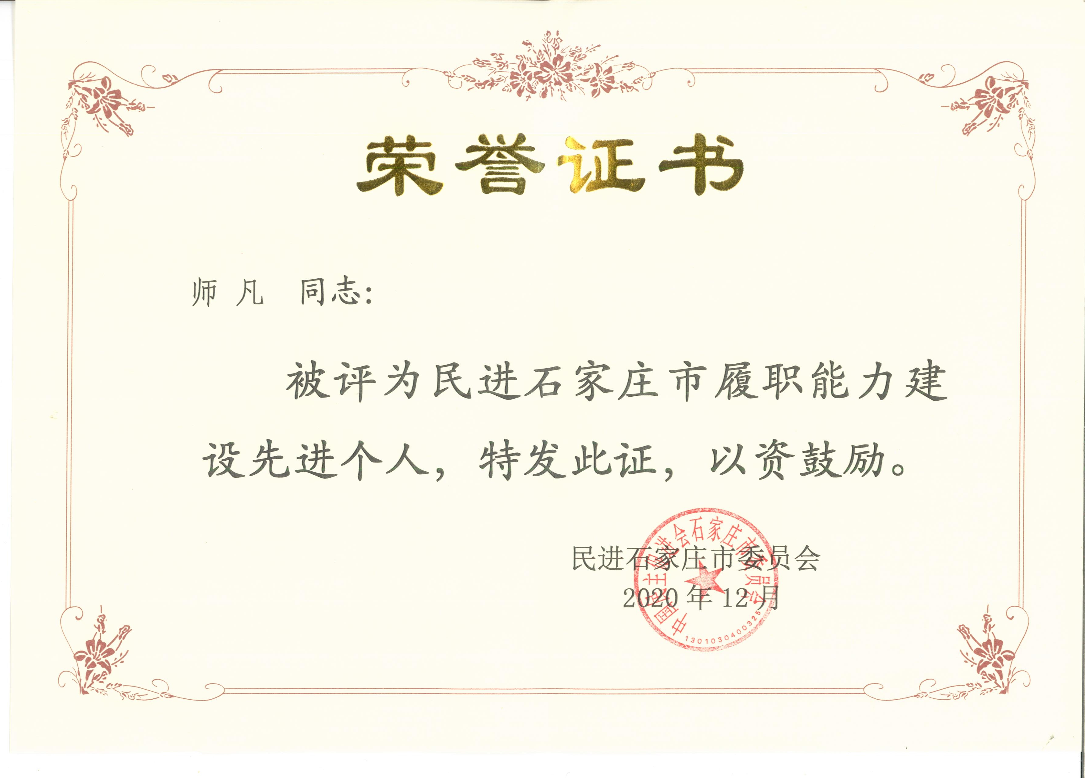 2020年12月25日,中国民主促进会石家庄市委员会发布了《民进石家庄市委员会关于表彰履职能力建设先…