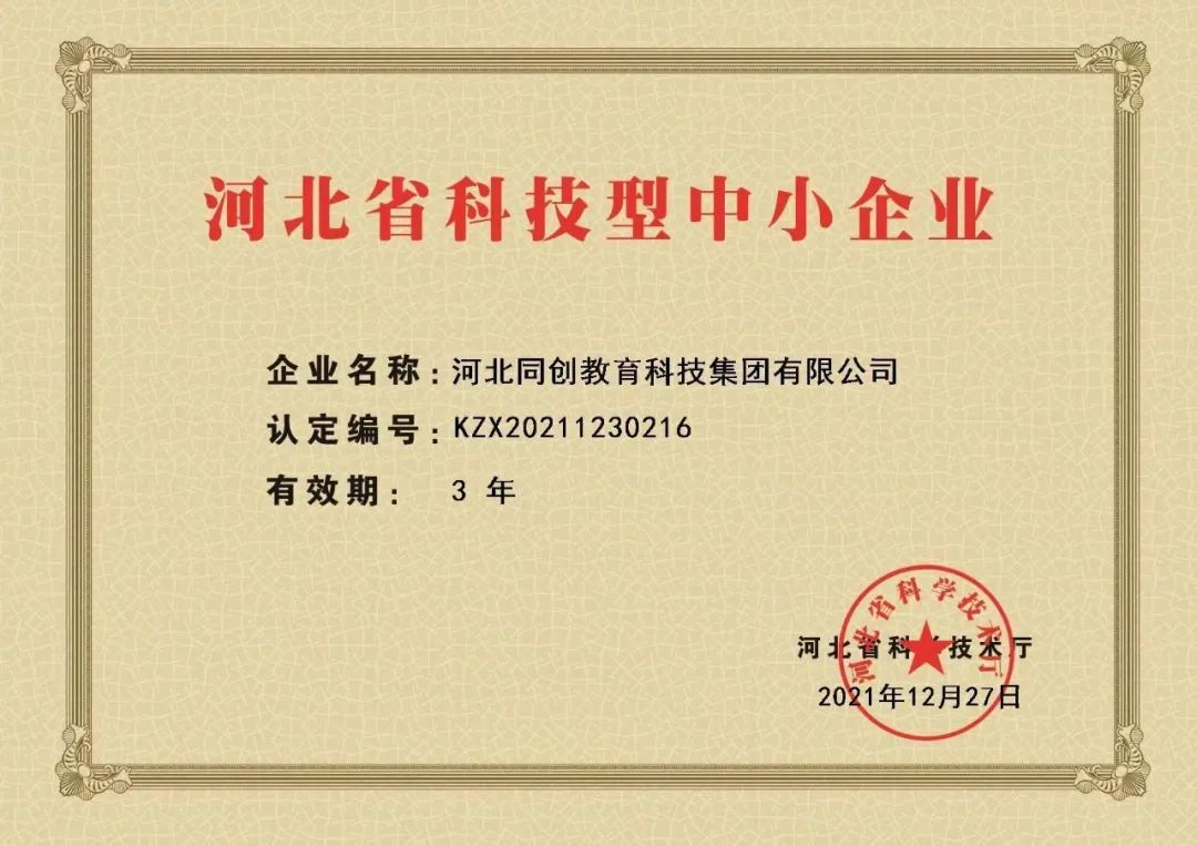 近日,同创教育科技集团被河北省科技厅认定为“河北省科技型中小企业”。这是继集团获评为“石家庄…
