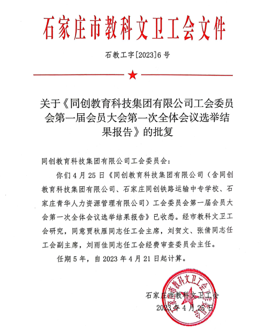 4月21日上午,同创教育科技集团工会第一届会员大会召开,石家庄市总工会党组成员、副主席吴丽娟,…