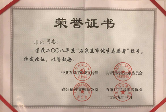 石家庄市优秀志愿者师凡